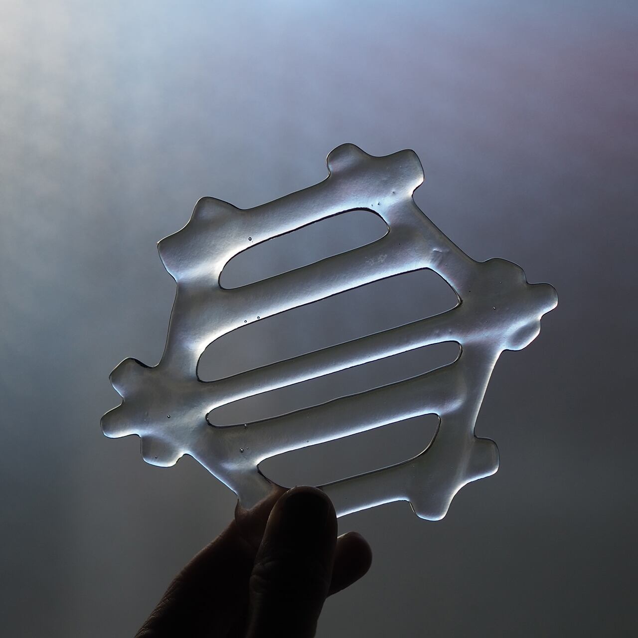 板ガラスをカットし電気炉で焼成するフュージングという技法で制作しています。